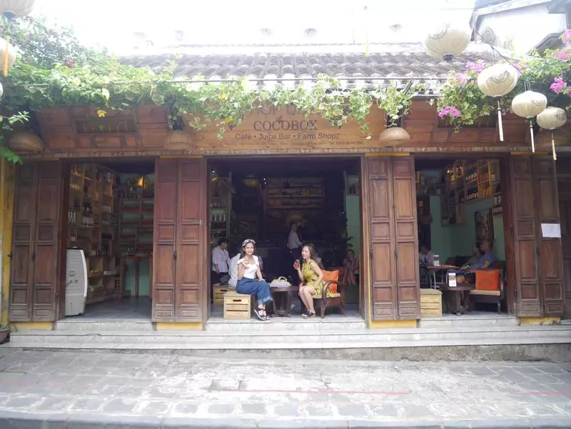 写真の【COCO BOX(ココボックス)】は、ホイアンでも何店舗か構える人気のオーガニックカフェ☆通りから丸見えのオープンなカフェは開放感たっぷりで落ち着きます♪