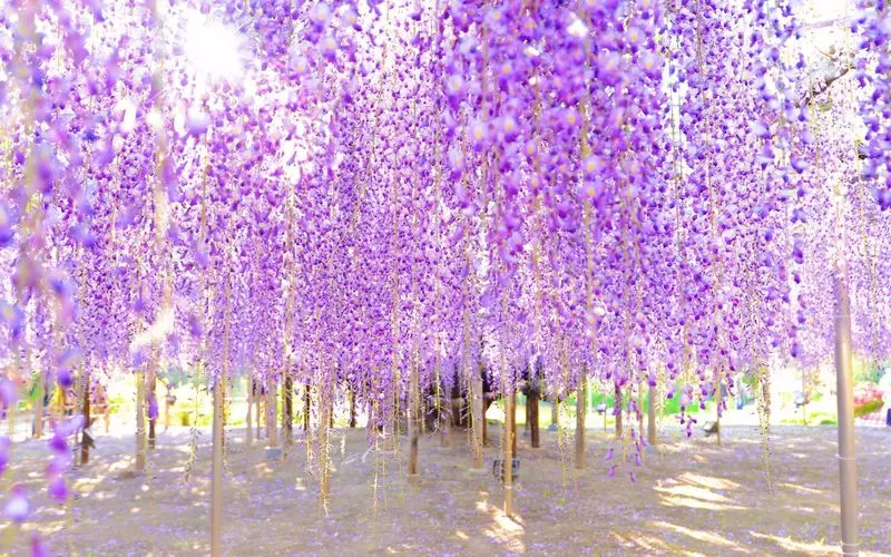 フジの花で有名な「あしかがフラワーパーク」。季節によって様々な種類の花が、それぞれの絶景を生み出してくれます。敷地面積は94,000平方メートルとかなり広く、園内にはレストランやお土産屋さんもあり、施設も充実◎