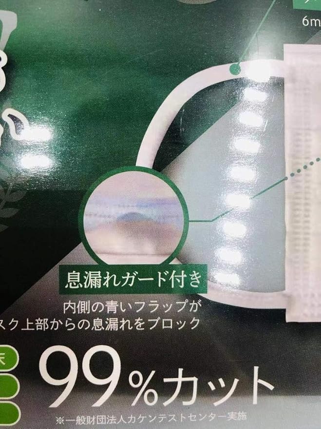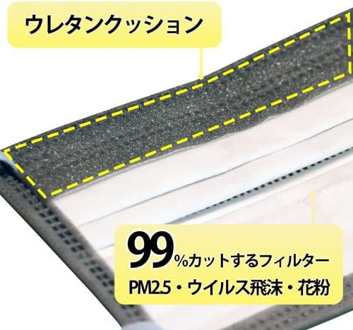 アルミ製のノーズフィルターとウレタンのスポンジで、しっかりとフェイスラインにフィットしてくれます。丸太状のゴムを使っていて、耳が痛くなりにくいのもうれしいポイント。 メガネをかける人のために作られており、こだわり設計のマスクを探している方におすすめです。