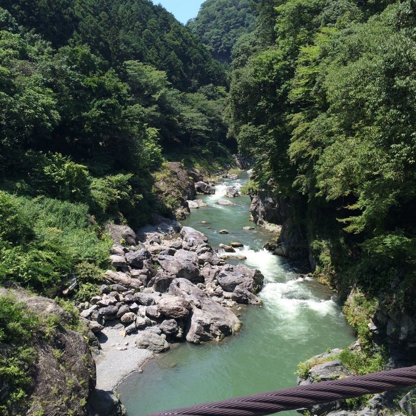 清流の周りを覆う奥多摩の木々は青々しく、迫力ばっちり!「鳩ノ巣渓谷」の写真を撮る際は「鳩ノ巣小橋」がおすすめ撮影スポットです。