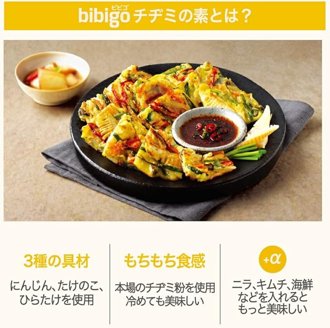 続いてご紹介するソウル市場のおすすめ商品は、bibigo(ビビゴ)の「チヂミの素」。チヂミは韓国料理の定番おかずで、外はパリッと中はもちっとした食感がポイントです。