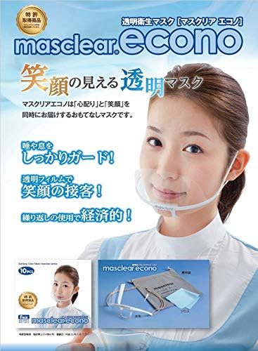 続いて、おしゃれな透明マスクを紹介します。『透明衛生マスク マスクリア エコノ』は、シンプルなデザインとクリアな透明フィルムで、付け心地のよさや耐久性、衛生面など徹底的にこだわっており、さまざまな業界で導入されている透明マスクです。