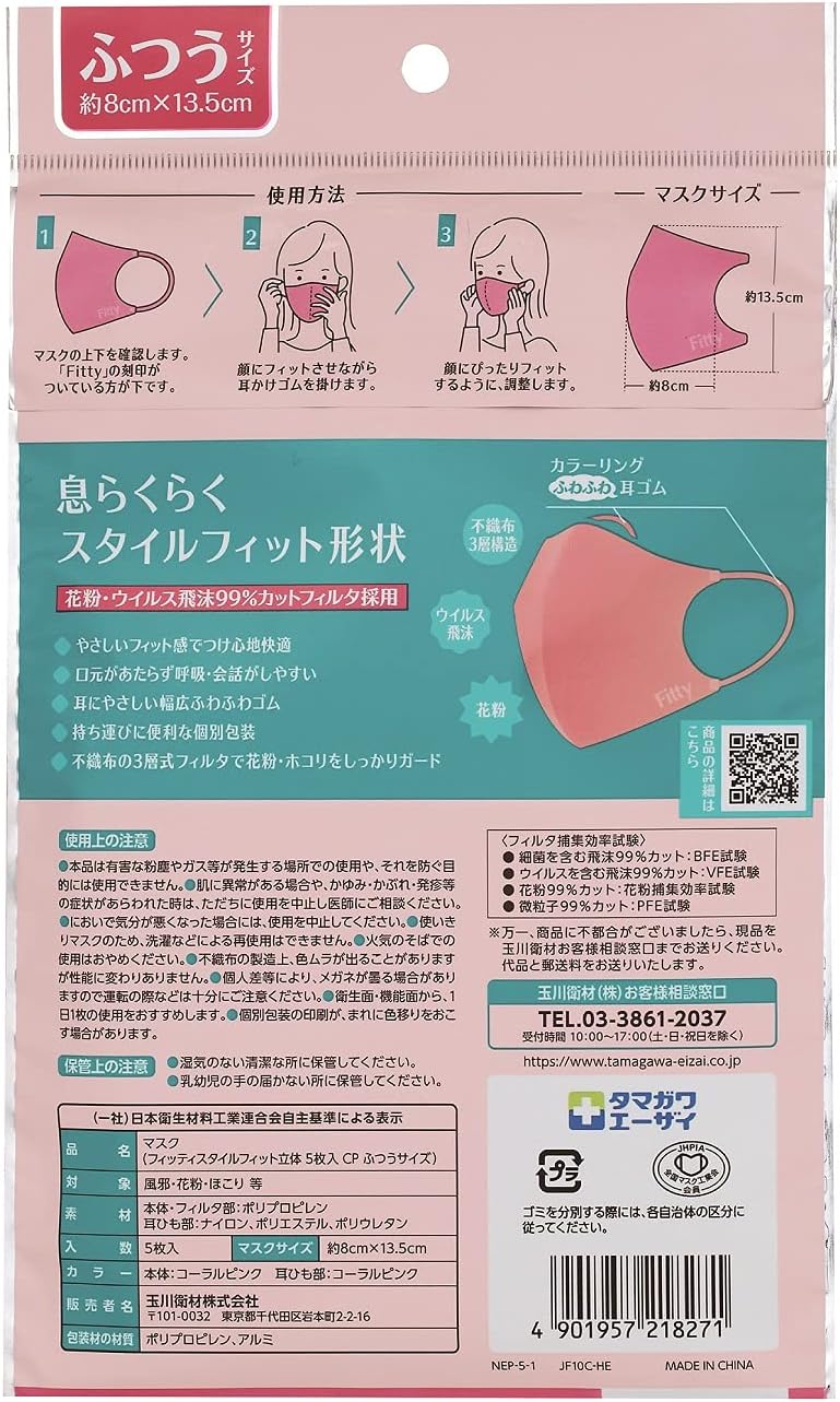 次に紹介するおしゃれな不織布マスクは、『Fitty』。機能性とファッション性を兼ね備えた、立体形状の不織布マスクです。個包装になっているので、持ち運びも便利!マスク本体と耳ゴムが同系色になっており、一体感のあるデザインです。