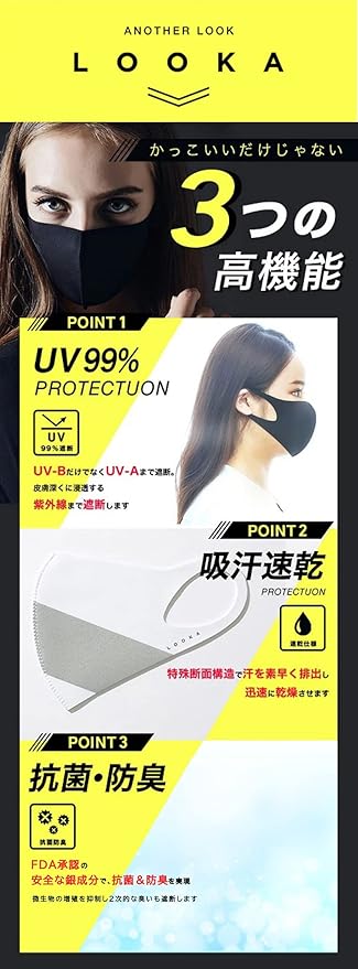 次に紹介するレディースにおすすめのおしゃれ布マスクは、『LOOKA』。小さめサイズでありながら、顔をしっかり覆う3Dフィットデザインが特徴です。