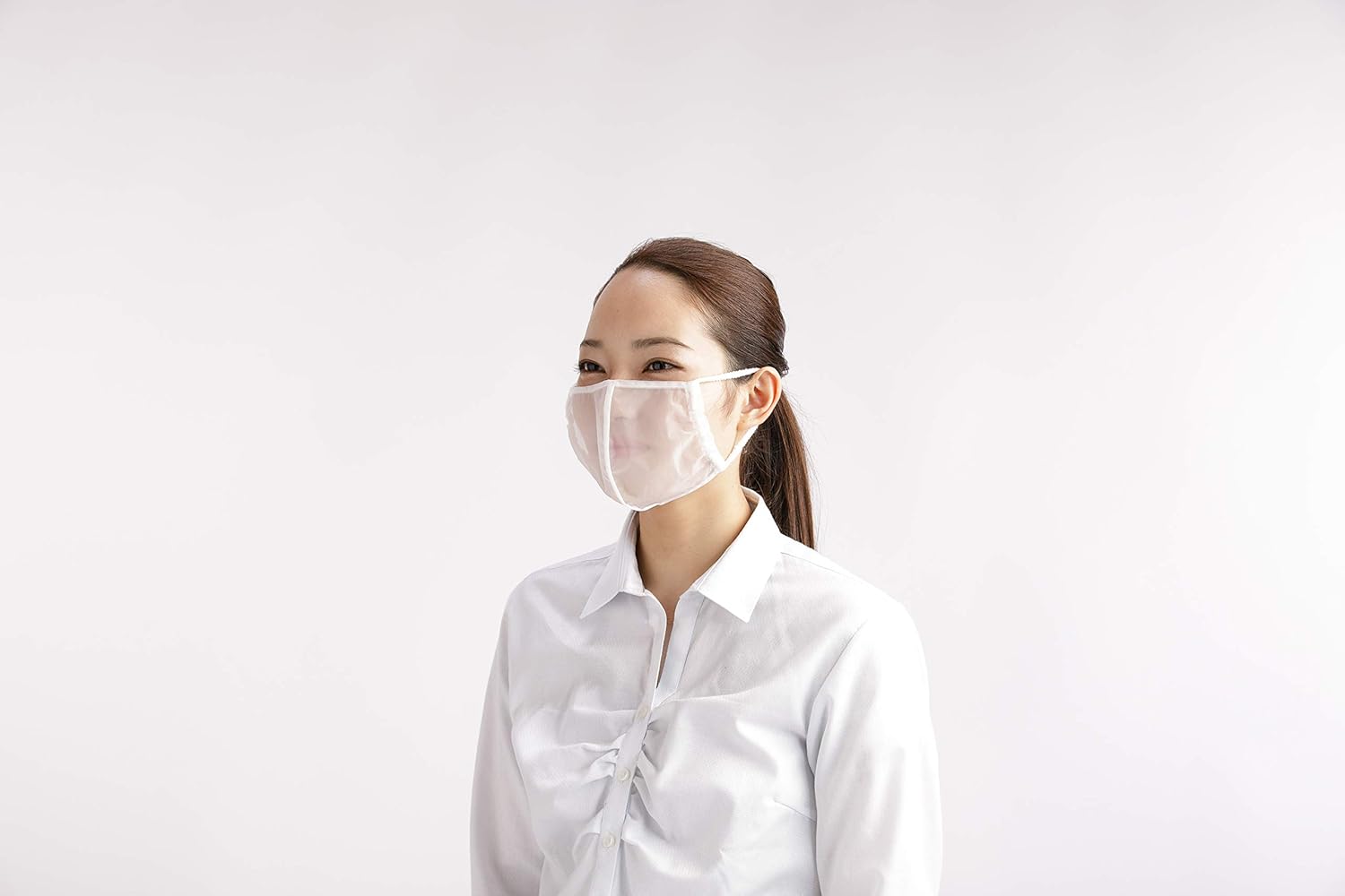 続いて紹介するおしゃれな透明マスクは、『日本製 透明マスク™』です。ナイロンを使った透明感のある素材がスタイリッシュなアイテム。透け感のあるマスクからは表情や口の動きが見えやすく、サービス業や接客業の方にぴったりです。