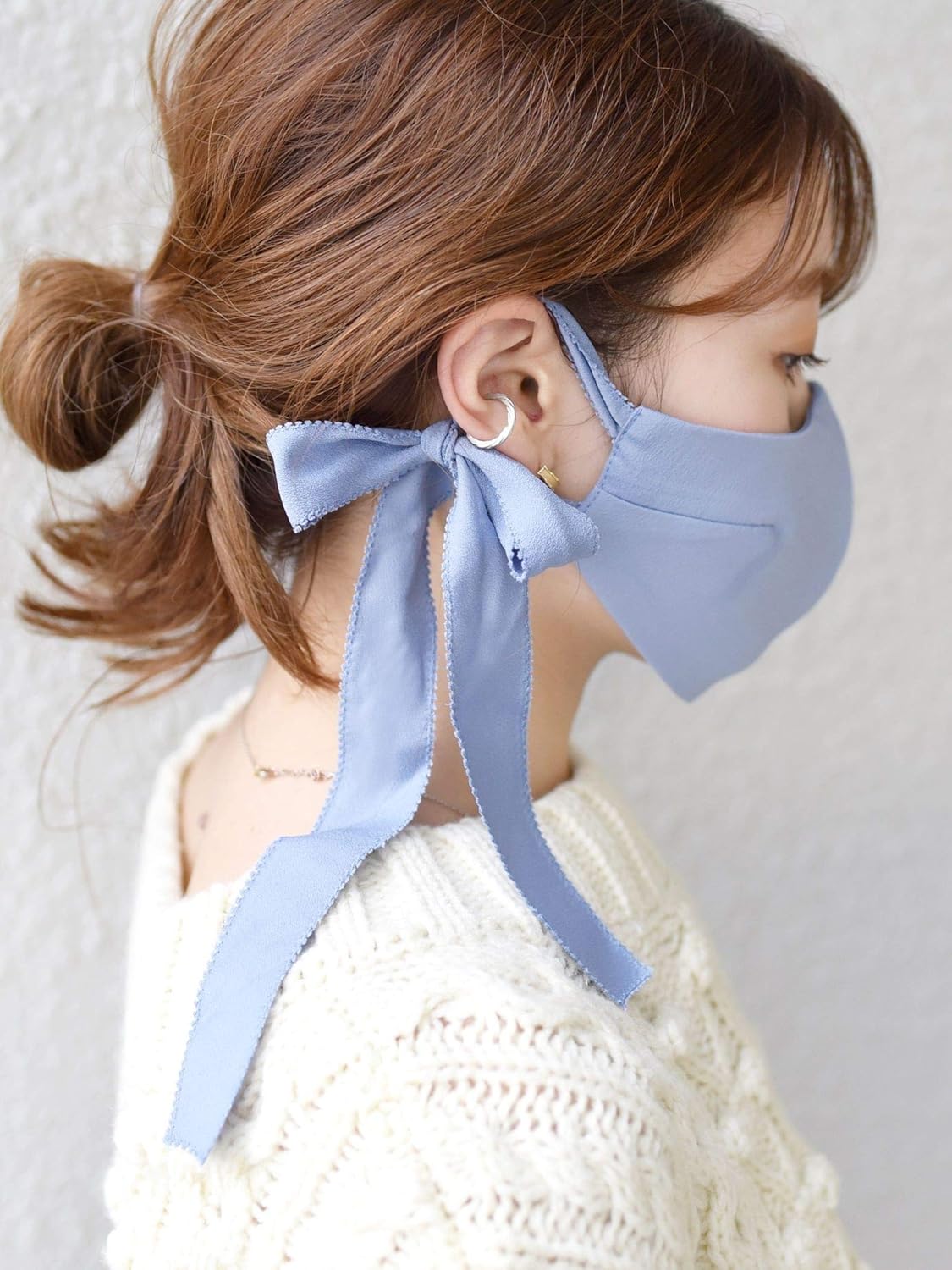 次に紹介するレディースにおすすめのおしゃれ布マスクは、SHIPS for womenの『troisiemechaco:サテンカラーバリエーションマスク』。サイズ調整可能なリボンが、顔周りを華やかな印象にしてくれます。