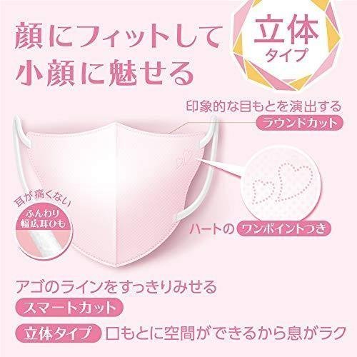 小顔と美鼻にこだわった立体設計で、内側は抗菌防臭機能のあるガーゼ生地を使用しています。キュートなデザインなので、お出かけやイベント時にもおすすめのマスクです。