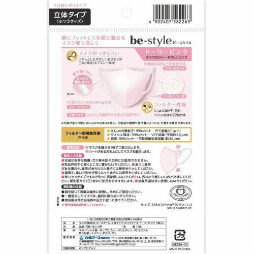 続いて紹介するおしゃれな不織布マスクは、『be-style 立体タイプ』。エアスルー素材を使用しており、ふわっとした着け心地のいいマスクです。