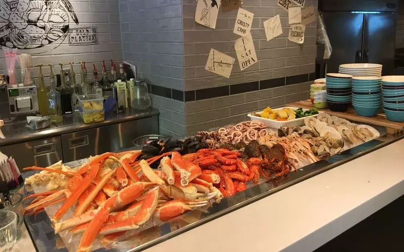 続いてご紹介するのは、ランチにおすすめの「The CRUSTY CRAB(ザ クラスティ クラブ)」。名古屋駅から徒歩約3分のところにあります。ここは、カニや海老、貝類などの新鮮なシーフードを手づかみで食べる、今話題のレストランです!(※“食べログ”より参照)