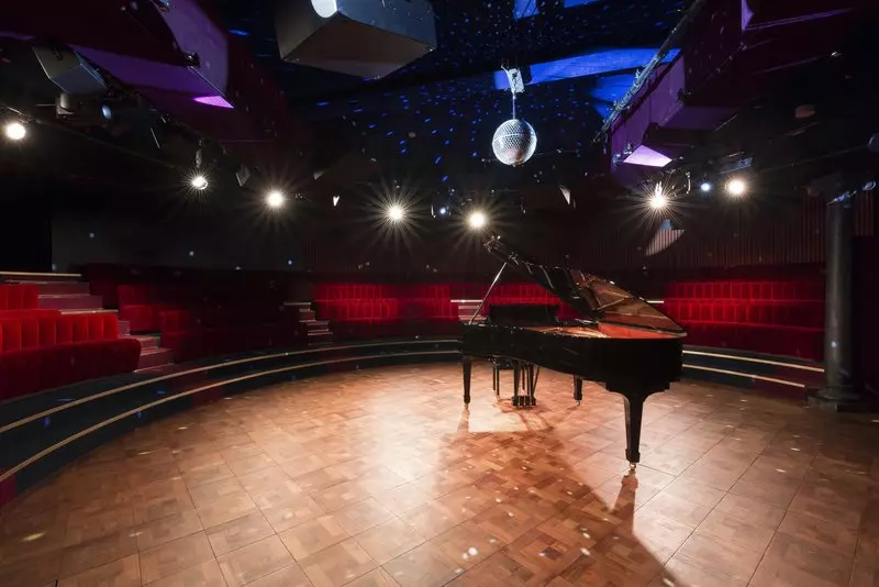 アーティストを取り囲むように造られた円形ホールは、100人ほどが収容できるこじんまりとした空間でありながらも、なんともラグジュアリーな印象。