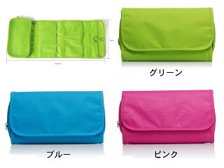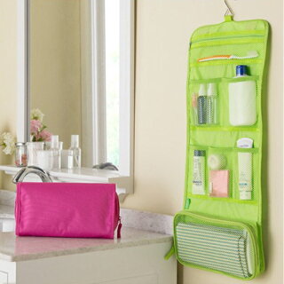 カバンの中でかさばりがちな、メイク道具やスキンケア用品を始めこまごまとしたものをポーチでまとめて管理できます。さらに吊り下げられるので、朝の準備も楽ちん!明るいグリーン、ピンク、ブルーの3色展開です。