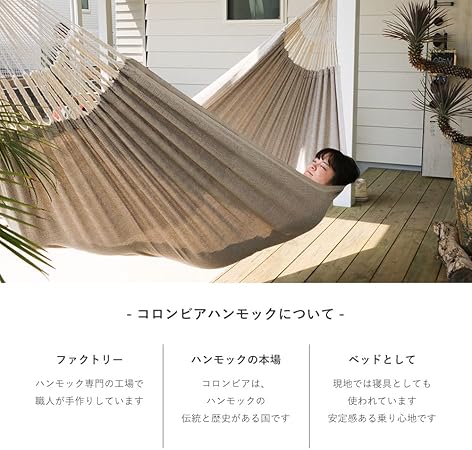 布製ハンモックは、肌触りがよく快適な寝心地。16色(※)のカラーを展開しているので、ウッドデッキのテイストに合わせセレクトできます。忙しい日々から解放される、穏やかな空間づくりにおすすめのアイテムです。