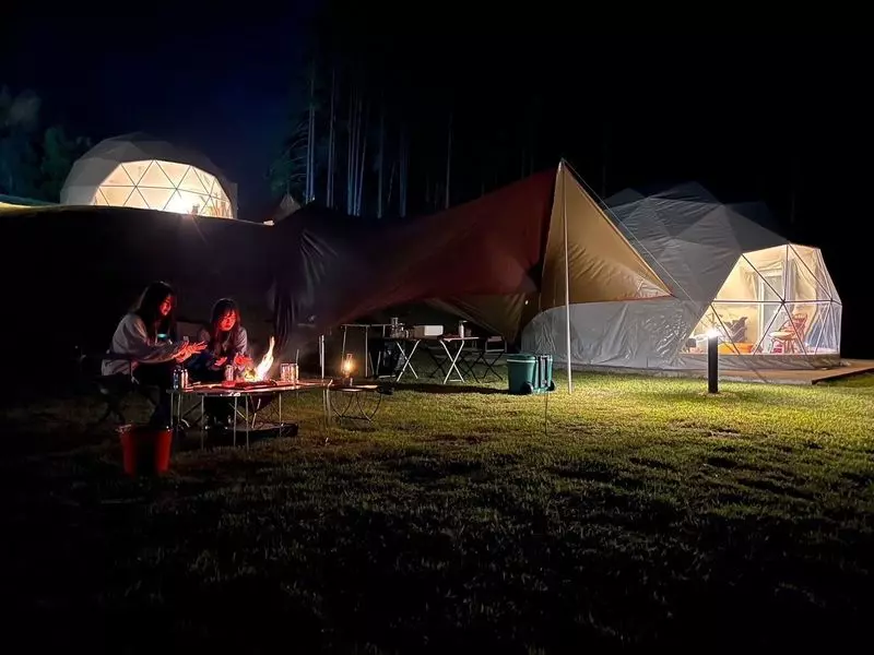 続いて紹介するおすすめの関東グランピング施設は『伊豆シャボテンヴィレッジ』。贅沢なアウトドア体験を叶えるドームテントと、キャビンタイプのバス・ウォシュレット付きトイレが一体化しているグランピング施設です。