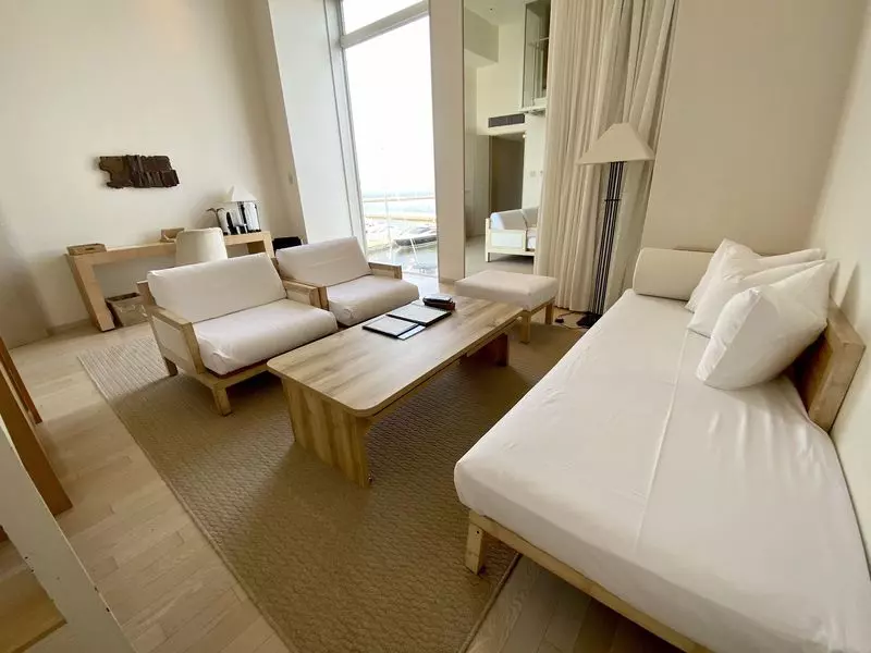 エントランス、ロビーからも海を見渡す事ができ、エントランスのソファーからの絶景。福岡のシンボル「福岡タワー」や「PayPayドーム」も見渡すことができます!お部屋に行く前からリゾート気分を味わえる空間でした。