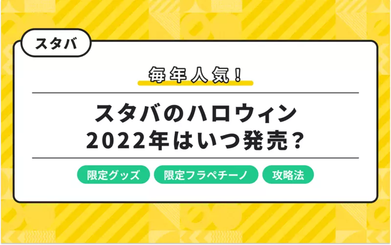 スタバのハロウィングッズ2022年の全種類と、限定フラペチーノを紹介。フラペチーノは10月19日(水)に発売が決定しました!グッズは黒猫やゴーストモチーフのかわいいタンブラーやマグカップ、カードなどが販売されています。人気のグッズを発売日当日に入手する攻略法、2021年の販売期間はいつからいつまでだったのかも参考に紹介します。