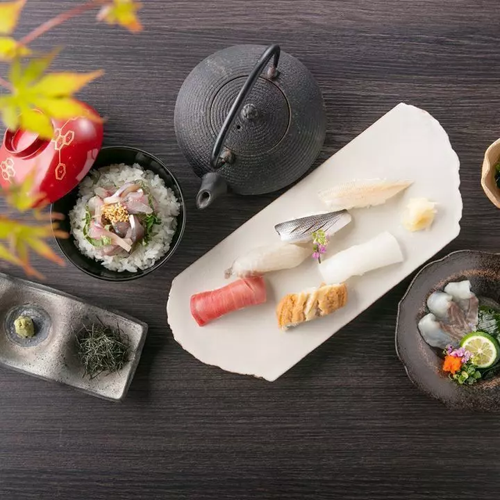 カウンター越しに広々とした庭園を見ながら、板前さんが丹精込めて握った絶品のお寿司ランチがいただけます。