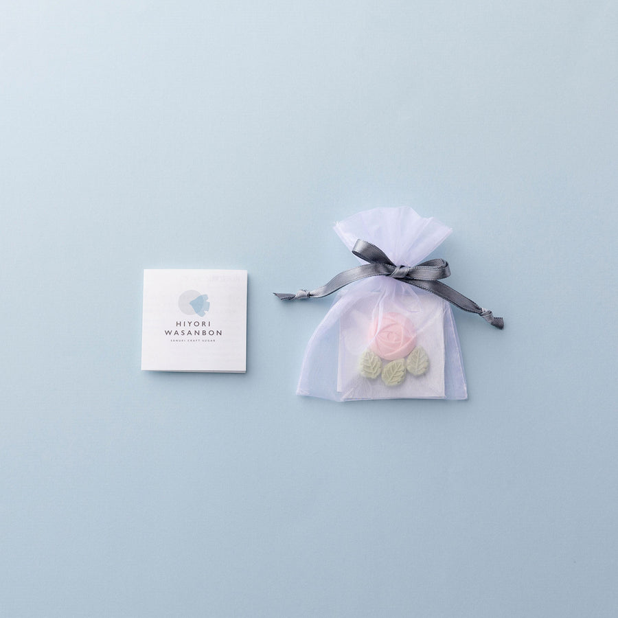 『HIYORI WASANBON』では、おしゃれでかわいらしい和三盆とラッピングのセットで購入できます。和三盆は、さまざまな型があり、それぞれで味が違います。口に含むと、さらりと溶け、優しい甘さと上品な味わいです。