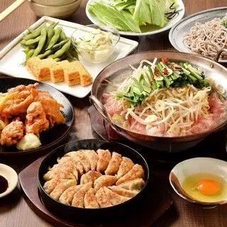 おすすめは2時間飲み放題付きの「町田御膳の宴会コース」。「刺身5種盛り合わせ」「豚しゃぶサラダ」「いわい鶏串焼き盛り合わせ」など5品の料理に2時間の飲み放題が付いたコースです。