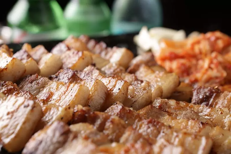 「サムギョプサル」には、鹿児島産の厳選豚を使用。質や厚み、焼いた際に「脂が落ちてもおいしい!」といった、こだわりのある仕上がりになっています。(※"「小さな韓国 あぷろ」ホットペッパーグルメサイト"参照)