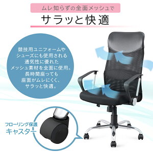 「ハイバックのメッシュバックチェア」は10,000円以内で手に入るのがうれしいポイントです。ロッキング機能や背もたれは背骨に沿ったS字カーブになっているなど、座っていても疲れにくい構造。価格を抑えたい方、会議室用などにたくさん取りそろえたいという方などにおすすめです。