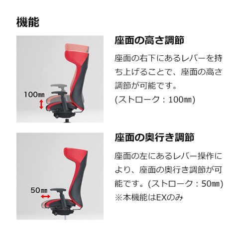 座面のみを独立して前傾させることで快適な座り心地をサポートします。腰や背中だけでなく下半身が疲れやすいという方におすすめです。