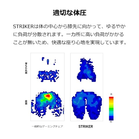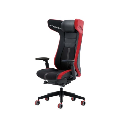 「ストライカー」は、オカムラのオフィス製品開発の知見を活かして作られたゲーミングチェア。プレイヤーが長時間座っても集中できるようゲーム中の姿勢にあわせた機能がついています。