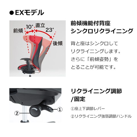 前傾姿勢から後傾姿勢まで様々な姿勢をサポートするハイグレードチェア。