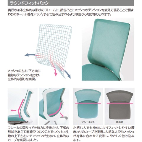 | シンクロリクライニング | ・前傾姿勢をサポート ・背中や太ももに負担がかからない ・背もたれと座面が連動 ・細かい調整が不要 |