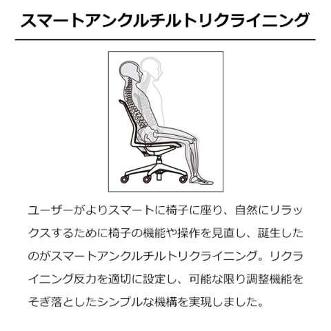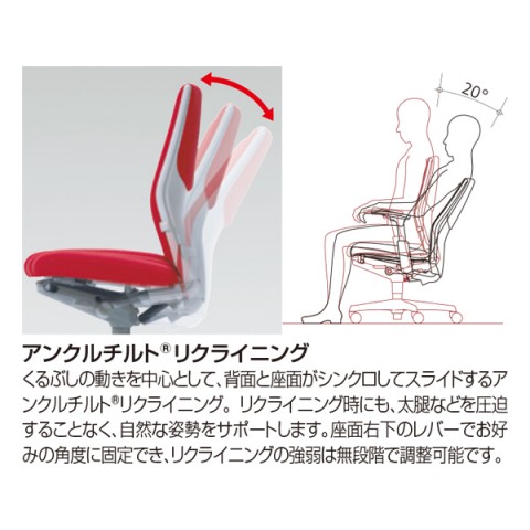 アンクルチルトリクライニング機能(※)で背と座面がシンクロしてリクライニングするので、自然な姿勢をサポートしてくれます。