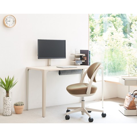 樹脂部や金属部が見えないように張り材を背前面に配して作られているので、リビングにもなじむデザイン。在宅で作業をする方や、勉強用のイスを探している方におすすめです。