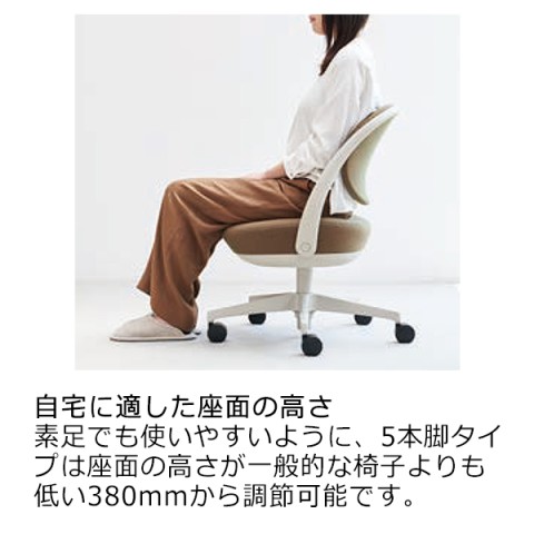 また、適度なロッキング角度を採用しているため、限られたスペースでも心地よく座れます。コンパクトなリビングやワークスペースでも使いやすい新しいスタイルのオフィスチェアです。