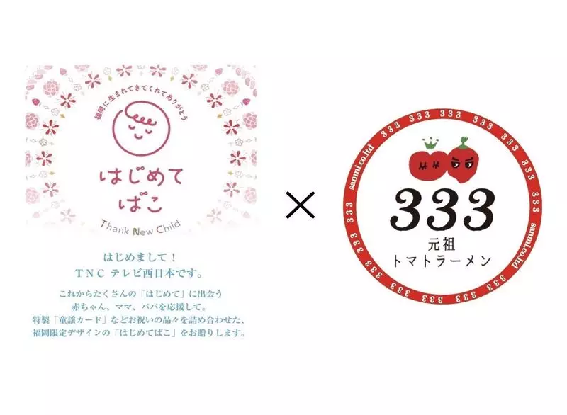 さらに、元祖トマトラーメンと辛めん 三味(333)は『TNCはじめてばこ』のスポンサーを務めています。「はじめてばこ」(※)の中に「育児支援カード」を封入しているので、子どもが生まれたばかりの家庭の方はぜひ申請してみてください。