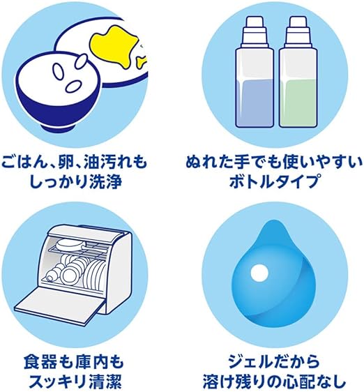 食洗機や他の食器へ油汚れが移るのを防ぐ効果がある商品です。また、ワンプッシュで1回分の適量が出るボトル設計のため、計量も楽々行えます。