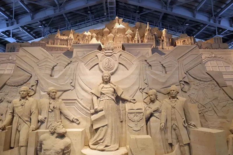 「砂の美術館」では、その名前の通り、砂からできた芸術作品がずらりと並んでいます。