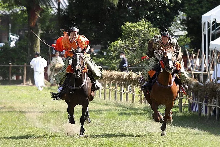 騎手は右方(うかた)と左方(さかた)に分かれ、馬を走らせ早さを競います。左方の馬が勝つ年は豊作になるという言い伝えがあり、人々は左方の勝利を願い豊作を祈ったそうです。