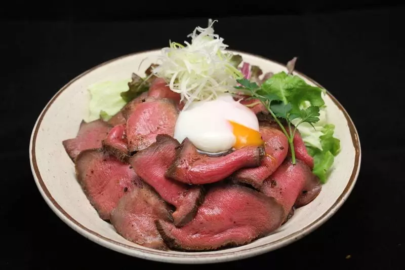 丁寧にローストされた柔らかい牛タンがドッサリ!噛めば噛むほど旨味が楽しめ、特製醤油ソースの上に温泉卵が絡んで絶妙な味わいです!