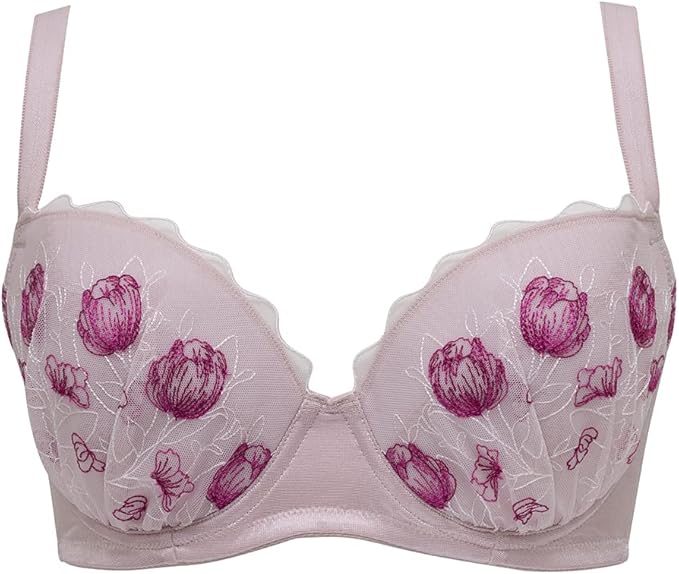 続いてご紹介するのは『ルシアン』の「グラマーさんお薦め Gカップまで対応 脇押さえてスッキリブラジャー」です。美しい花柄のデザインは、胸元をキュートに演出します。