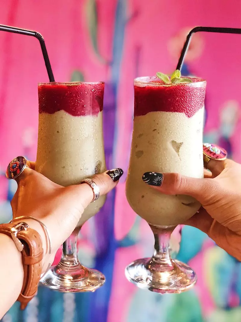 お店があるうるま市照間のい草粉末入りで、アボガド、バナナ、ベリー、豆乳と