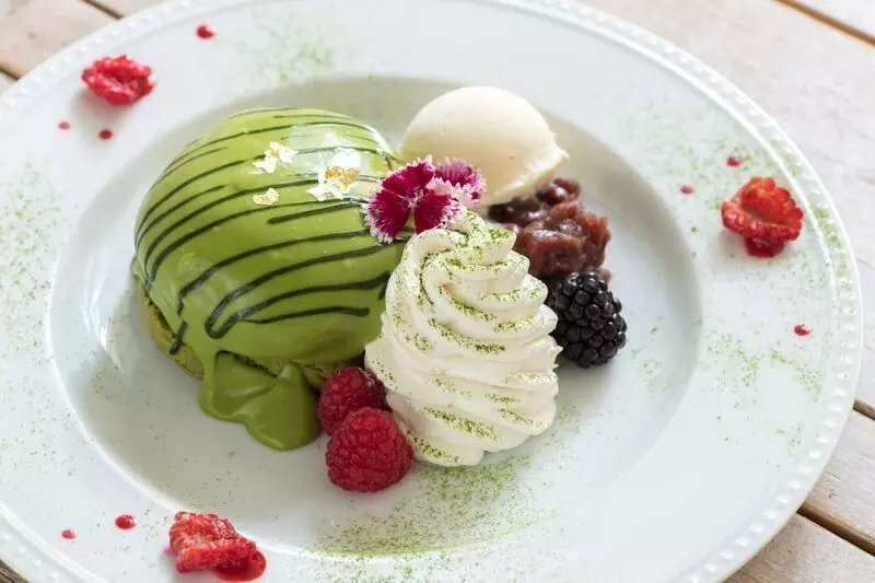 京都限定の「抹茶パンケーキ」は有機抹茶をたっぷり使ったグルテンフリーのパンケーキです◎