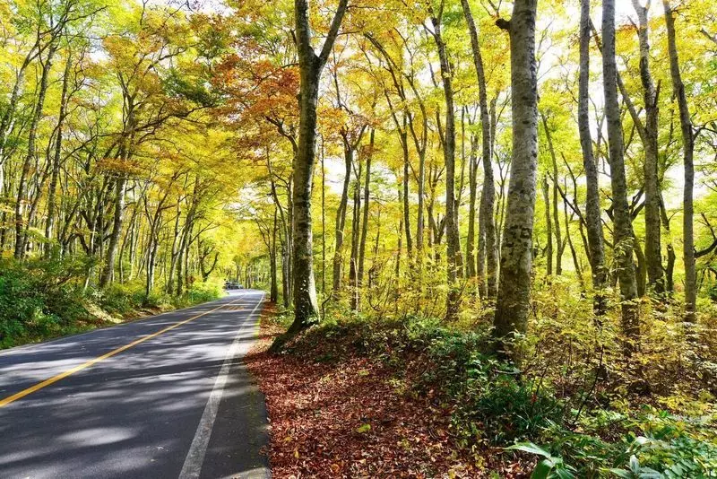 続いてご紹介するのは、「一の沢、二の沢、三の沢」。「鍵掛峠」から「桝水高原(ますみずこうげん)」へ続く「大山環状道路」沿いに位置する、大山のダイナミックな風景が広がる道!「三の沢」付近には、ブナの原生林があり「黄金のトンネル」と呼ばれるほど美しく、一斉に色づきます◎美しいトンネルの中をドライブするのは最高ですよ!
