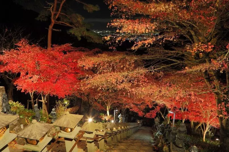 続いてご紹介するのは、「大山寺」。米子ICから県道24号を経由し、約15分のところにあります。大山の麓に佇む、落ち着いた雰囲気のスポット。こちらでも紅葉を楽しむことができますよ♪夜には大山寺の紅葉がライトアップされることも。昼とは違った美しい紅葉の景色を楽しめます!