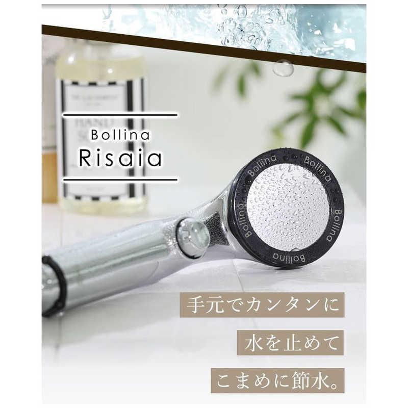 続いて紹介するのは、節水機能付きのシャワーヘッド「ボリーナリザイア」です。こちらは、持ち手にある一時止水ボタン付き(※)のシャワーヘッドです。小まめにシャワーを止めることによって節水できます。