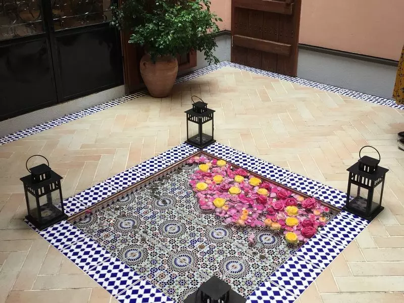 その扉を開けると目に飛び込んでくるのは、お花が浮かぶ中庭!!
