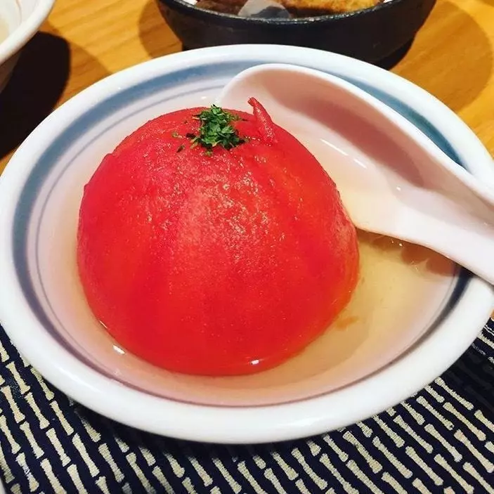 注文が入ってからトマトの皮を剥いて作ってくれるので出来たてを頂くことが出来ます。煮崩れもしていないですし、よくあるトマトの甘さだけが残るのではなく、しっかりと風味を感じることが出来るのでとても美味しいですよ♪