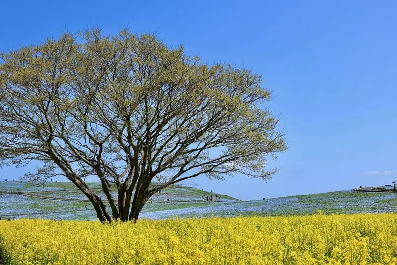 茨城にある『国営ひたち海浜公園』では「寒咲き種」の菜の花が設置されるため、4月中旬から下旬と、やや遅めの時期に鑑賞できるのが特徴。