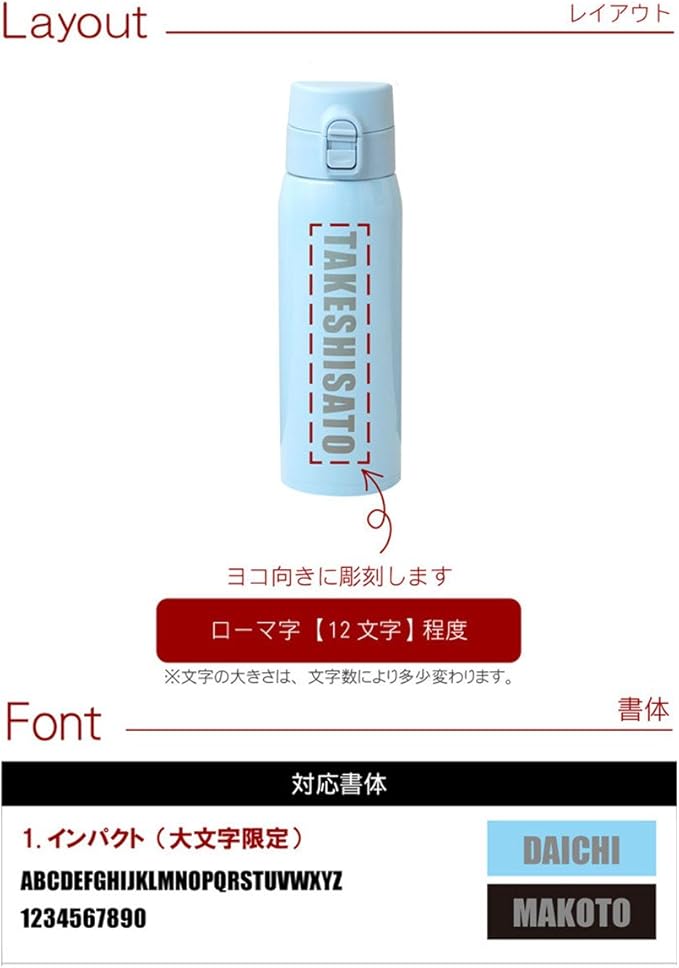 レーザー彫刻による名入れで消えにくく、長く愛用できます。蓋はロック付きワンタッチボトルなので、バッグインしたい通学にも携帯しやすいです。
