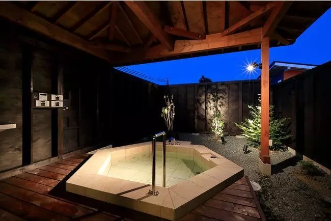 GLAMPING VILLAGE 滋賀今津浜では、貸切風呂を設置!庭園をイメージさせた露天風呂となっていて、のんびりお湯に浸かれます。40分/2,000円(税込)で利用できる(※)ので、温泉を満喫したい方は事前に予約してみてください。