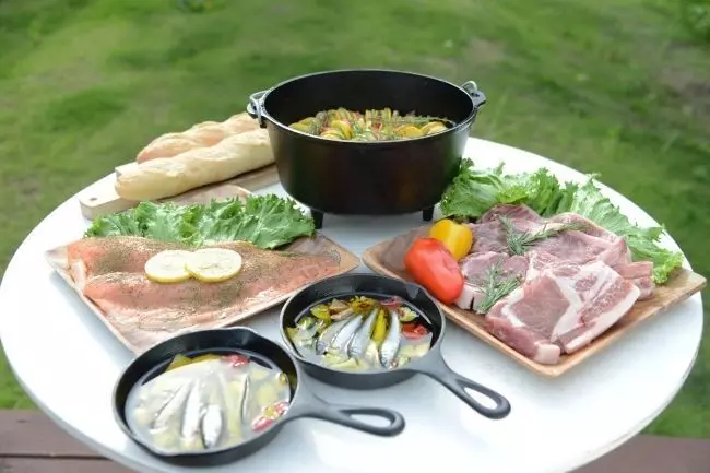 ドッググランピング 滋賀高島では、滋賀県の食材を豊富に使ったBBQを提供!近江牛をはじめ、野菜や湖魚などのグルメが堪能できます(※)。