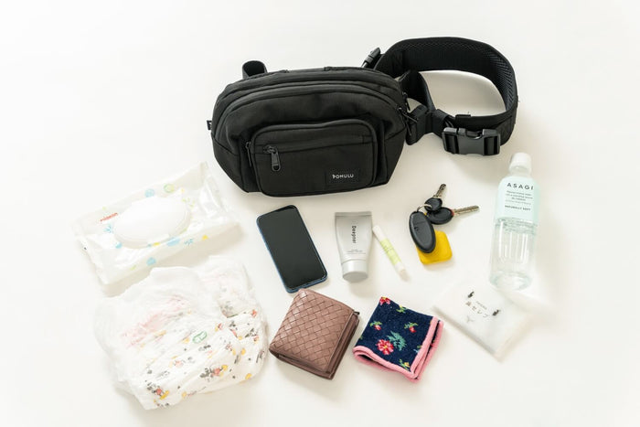 POMULUはショルダーバッグの2WAY仕様なので、そのままバッグとしても活躍します!おむつやおしり拭き、スマホや財布など、子どもとのお出かけで何かと多くなりがちな荷物をまとめて持ち運べるのも魅力です。