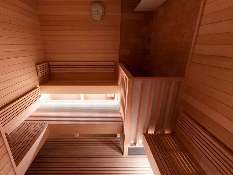 ホテルのサウナの壁には白樺の木が施されており、木の温もりとともに本格的なフィンランド式サウナが体験できます。